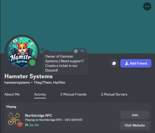 ensure HamsterDevelopment-RichPresanceto yourserver.cfg.