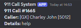 /911 /311 Command: Players can submit a 911/311 call with emergency details.